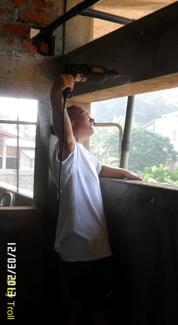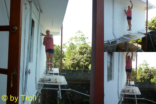Jacky beim Bohren in schwindelnder Höhe. |