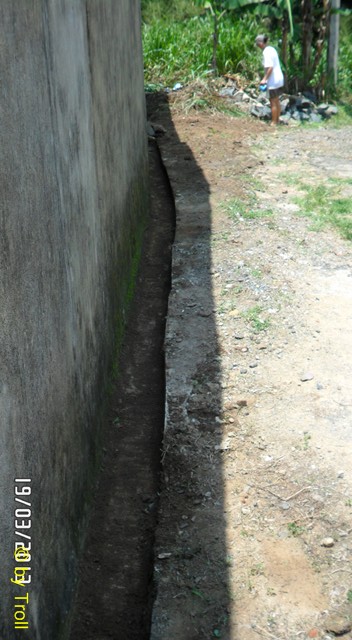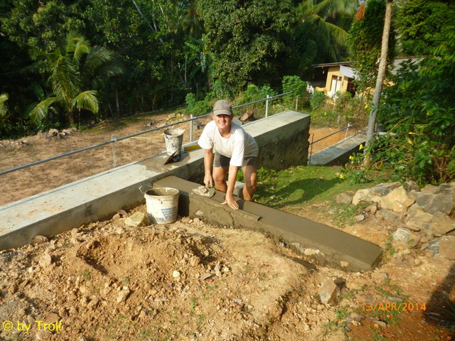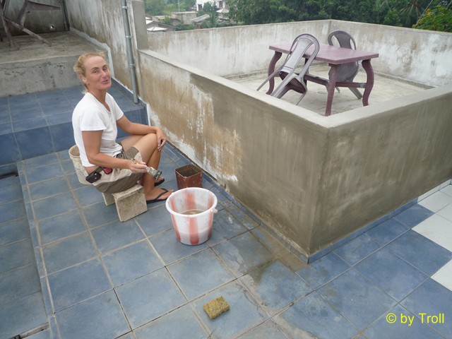 Einmal vorstreichen mit Mortar, damit die Mauer das Wasser nicht so aufnimmt. |