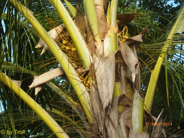 Nun kommen auch unsere ersten Kokosnüsse an der Zwergpalme |