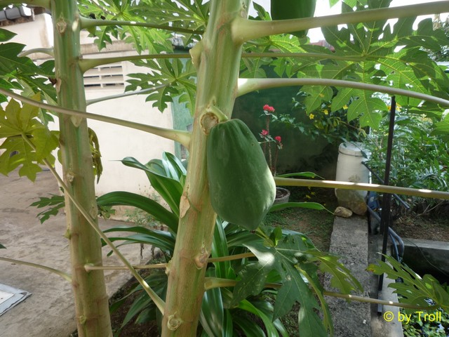 Die ersten Früchte des Papaya-Baumes. |