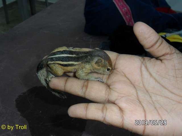 Eine Kundin zog ein Streifenhörnchen auf. |