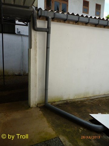 ...läuft nun durch das Fallrohr in den Erdtank. |