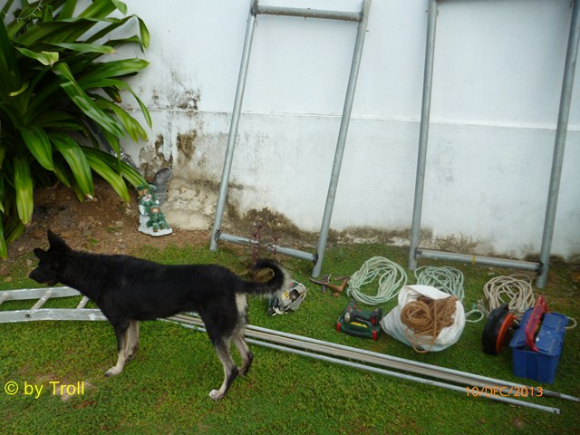 Jacky musste aufs Dach, weil sie leichter ist. |