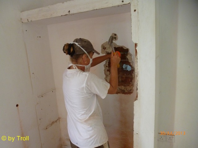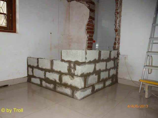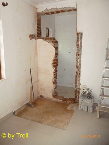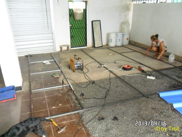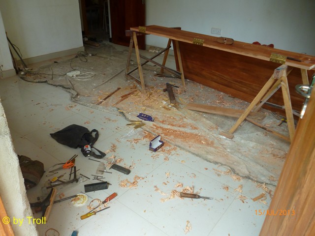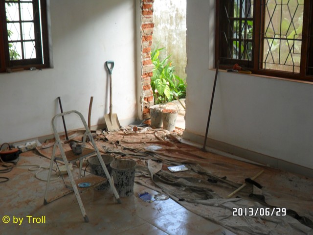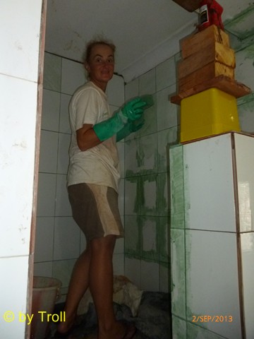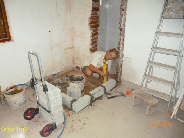 Danach ging es auf die andere Seite zum Fliesen. Nicht zu vergessen ist,das es ... |