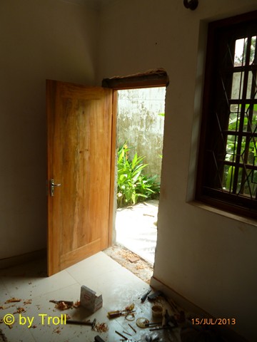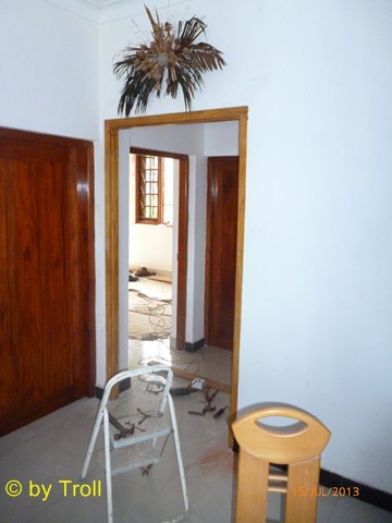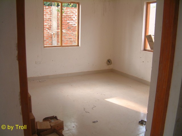 Unser ehemaliges Schlafzimmer ist nun ausgeräumt.Hinten rechts soll die Tür rein. |