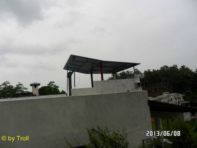 Ein Sturm am 08.06.2013 griff unser Dach an, um es zu verwüsten, was er aber nur zum Teil schaffte. Verbogene Teile und welche die sich gelockert hatten, mussten repariert werden.