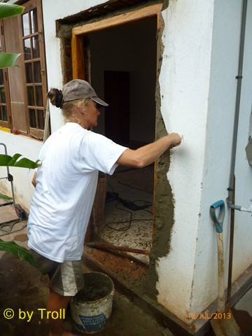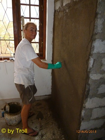 Nun ging es ans Verputzen. Das war nicht gerade einfach. |