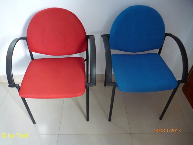 Auch die Stühle haben wir neu bezogen. Links alt - rechts neu. |