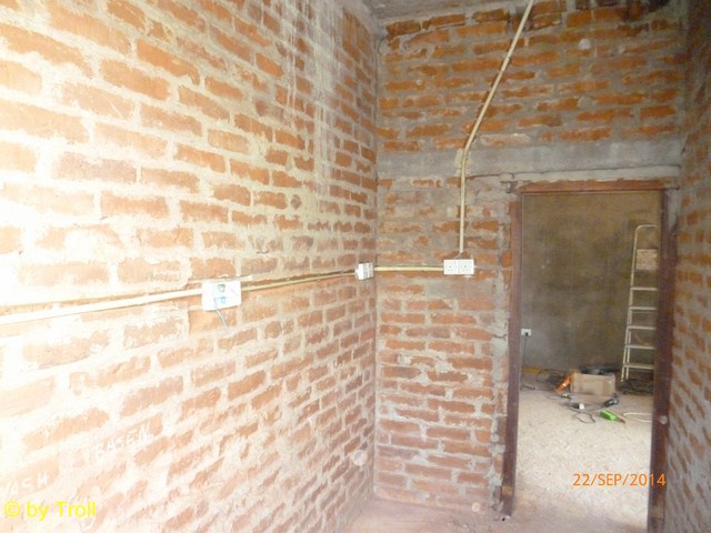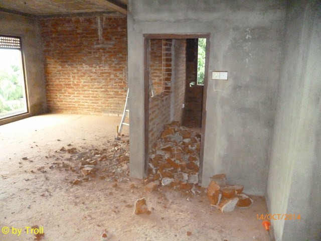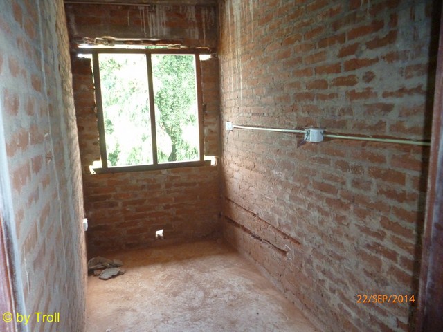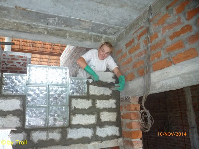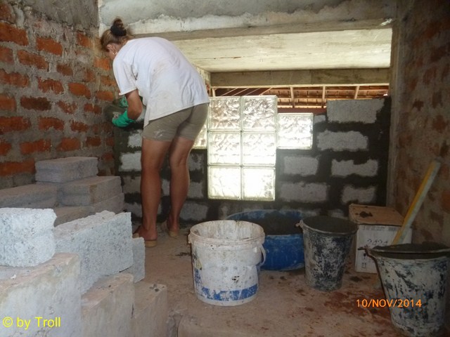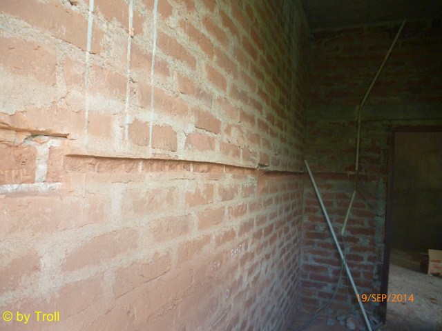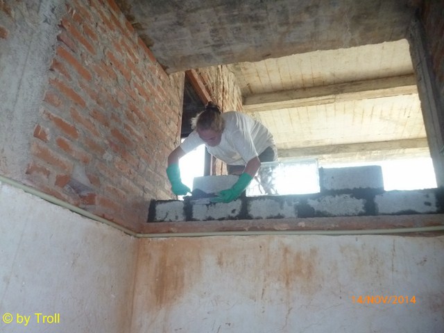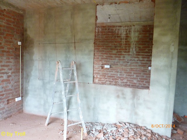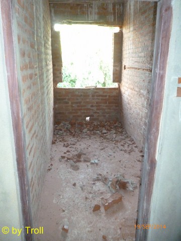 Hier waren vorher Glasbausteine drin. Die haben wir heraus genommen, weil dort ein richtiges Fenster eingebaut werden soll. Der Rahmen ist schon mal drin.
