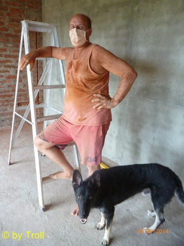 Iggi beim Schindern, so wie man ihn kennt.Und kaum waren die Rohre alle verklebt,