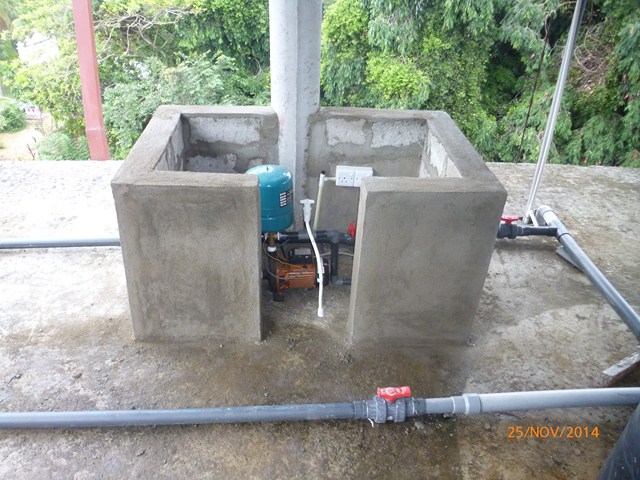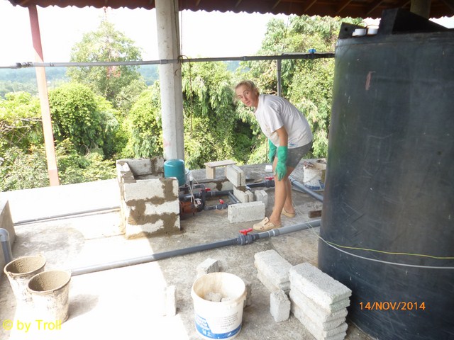 verschraubt und verbunden, wurde auch schon die Schutzmauer für die Pumpe angefangen.