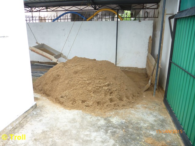 Erste Vorbereitungen für das Verputzen der ersten Etage. Der Sand muss gesiebt werden.