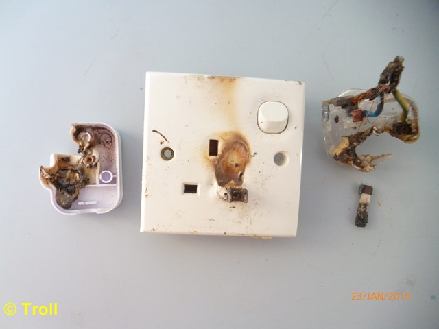 Auch das passiert ab und zu. Abgebrannter Stecker mit Dose.