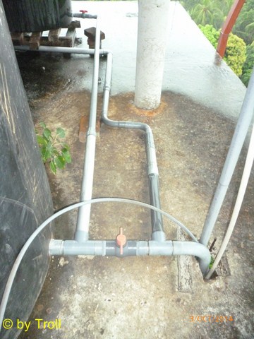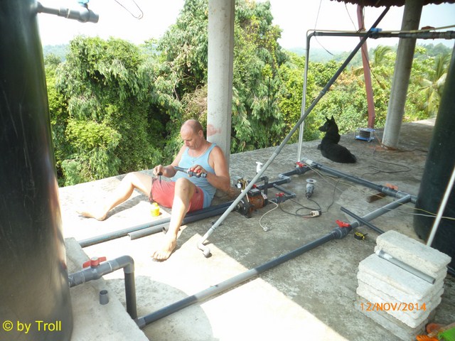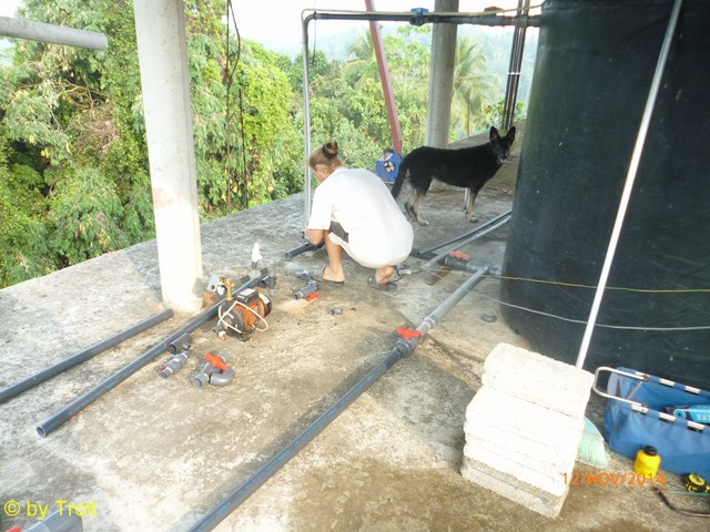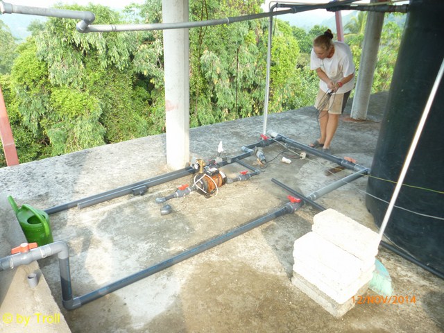 Um die beiden Tanks nun zu verbinden, mussten Rohre her. Und eine Pumpe.Und so sollte