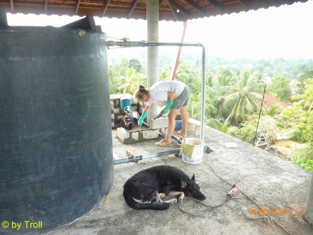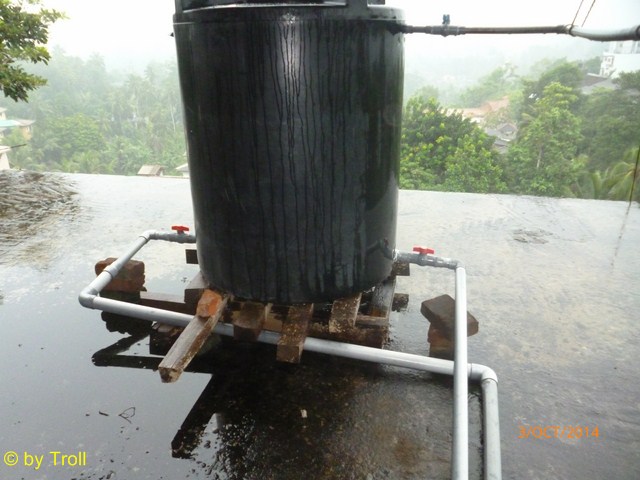 gebracht ist. Auch das Regenrohr zum Wasser sammeln haben wir modernisiert.