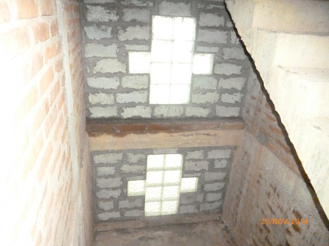 Der zugemauerte Flur mit Glassteinen mal vo innen.