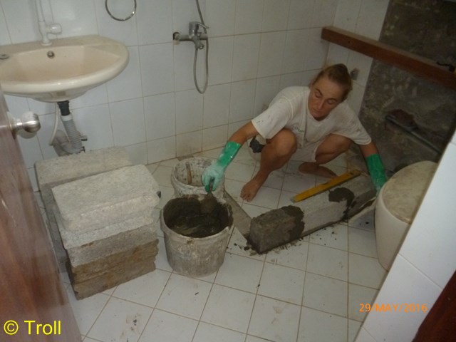Da noch Zement übrig war haben wir die Schwelle geglättet. |