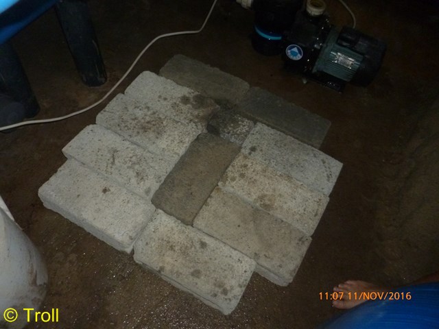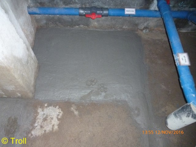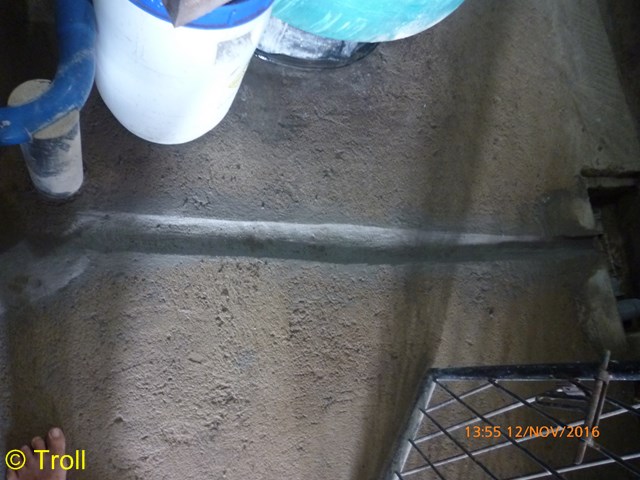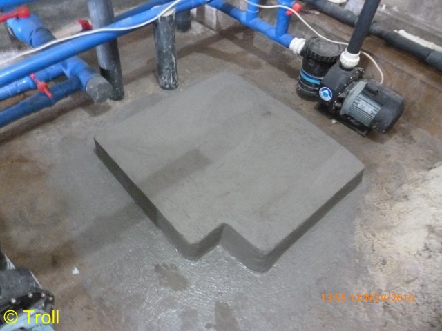 einen Ablaufrinne für Wasser eingearbeitet und die Ecke unter dem Schaltkasten gelevelt,