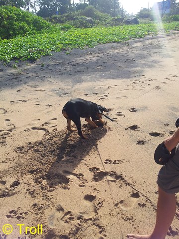 Wie bei jedem Besuch, fahren wir ein- zweimal mit den Hunden an den Strand. |