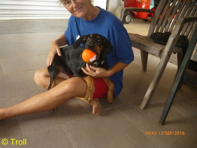 Jacky mit ihrem Flash. Ganz die Mutter. Flash jetzt schon 13 Wochen. |