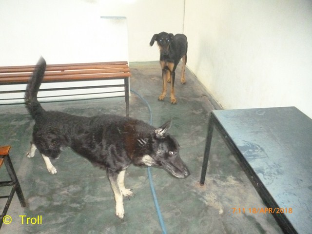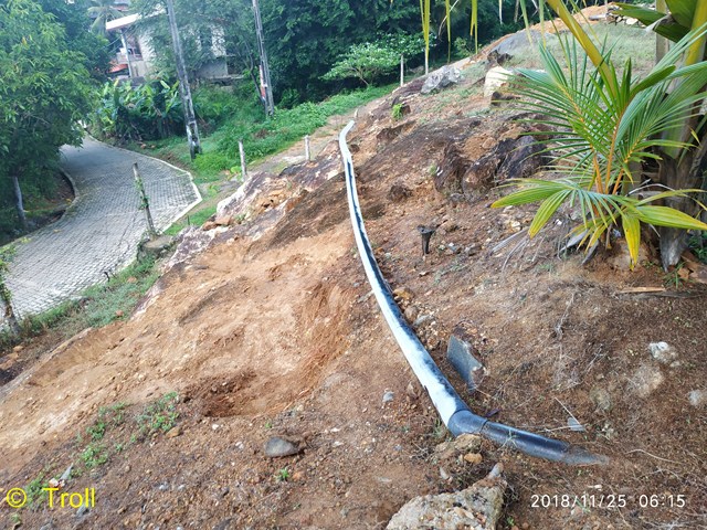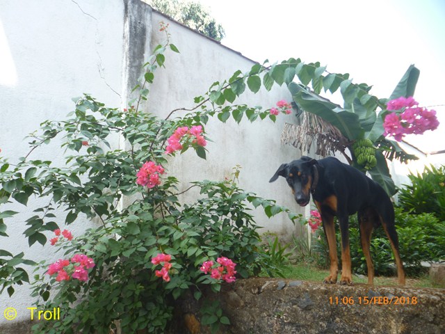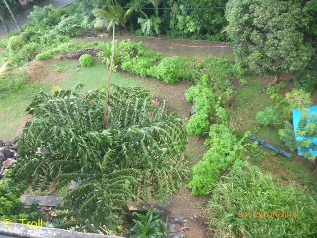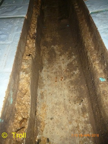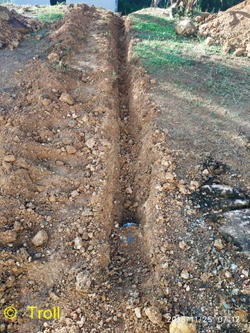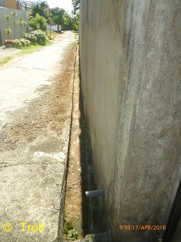 Jacky hat um das ganze Grundstück die Abwasserrinne vom Unrat befreit. |