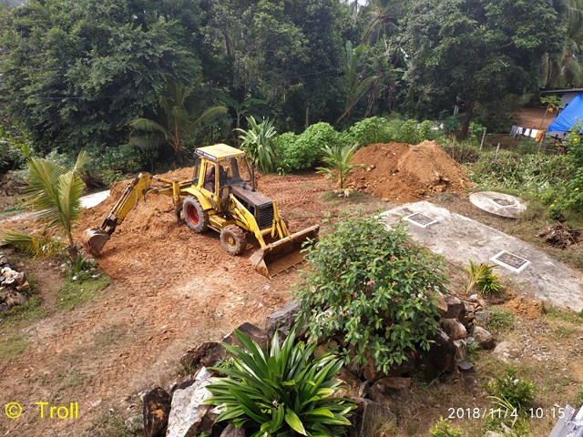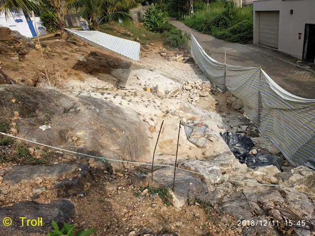 Auch auf Nachbarsgrundstück wird gearbeitet. Bohrungen für die Chemie um den Fels.... |