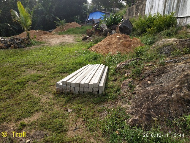 Die Betonpfeiler für den Zaun der auf die Mauer kommt wurden geliefert. |