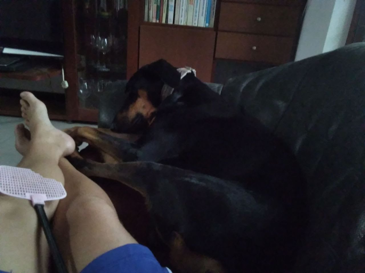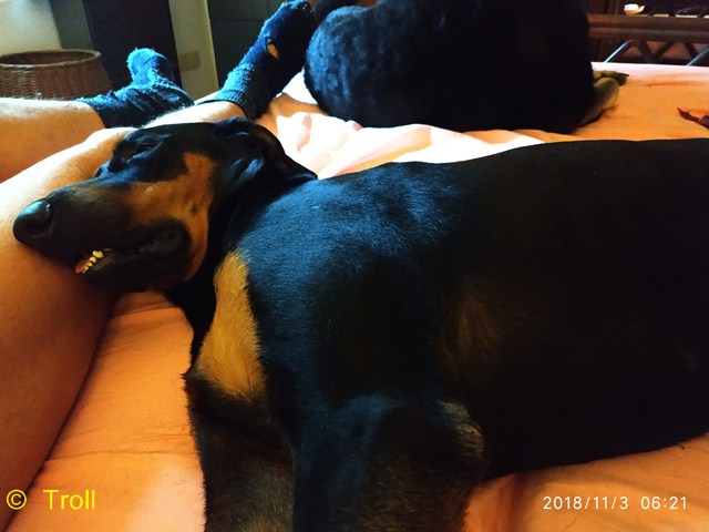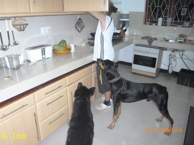 Jacky sammelt neue Kraft und Rex passt auf. |