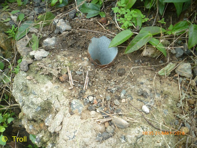 Hier geht das Rohr in die Erde und kommt auf der anderen Seite des Parkplatzes raus. |