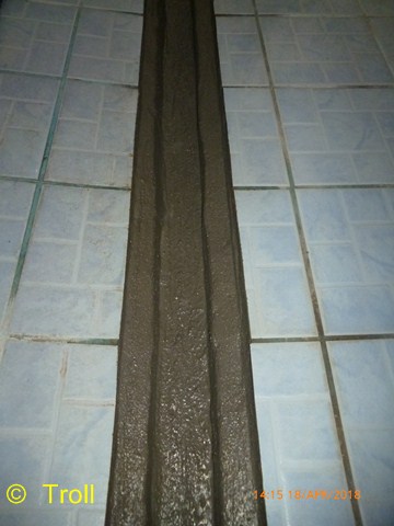 Die Duschablaufrinne musste nun repariert werden. Man hat mal wieder auf Sand gebaut. |