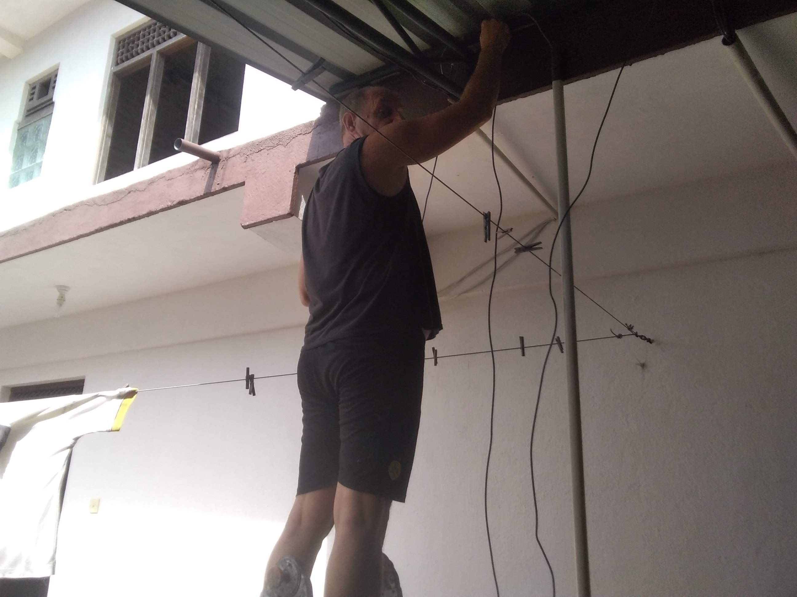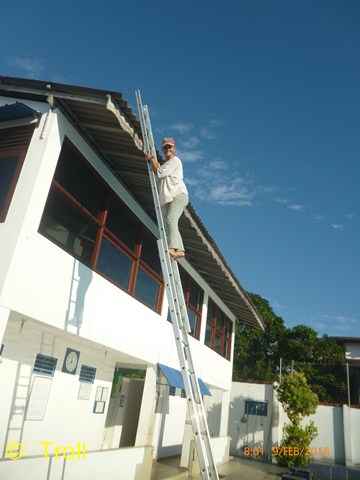 Jacky auf unserer neuen Leiter, die immer mehr zum Einsatz kommt. |