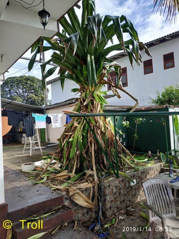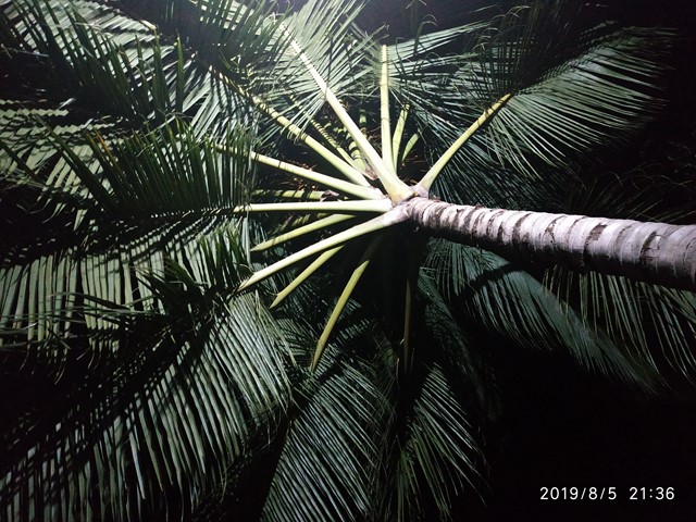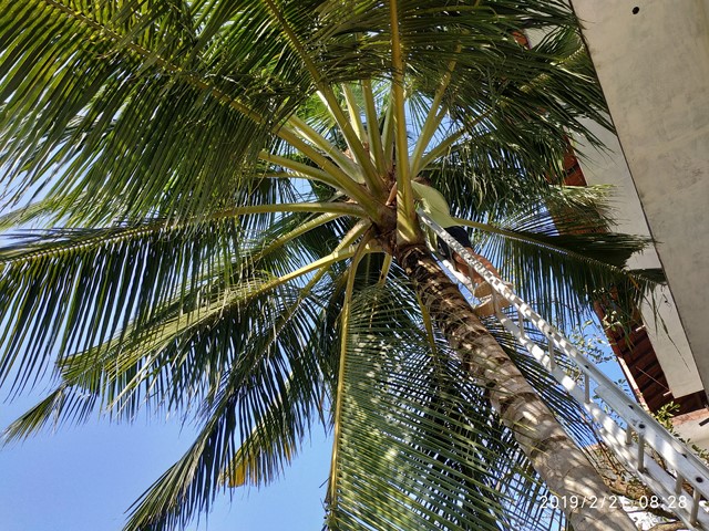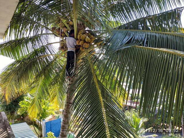 Die Palme hing voller Kokosnuesse, was irgendwann zu gefaehrlich wird. |