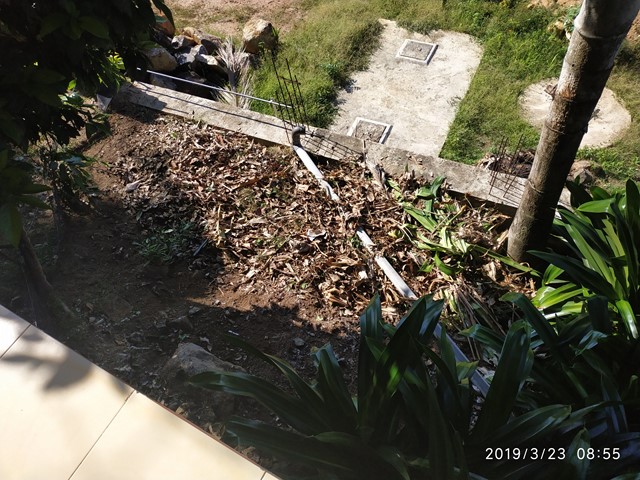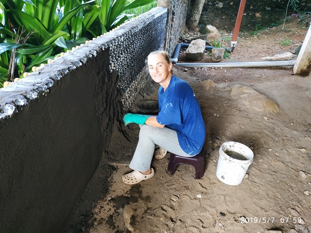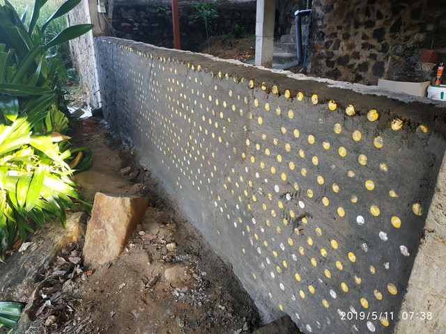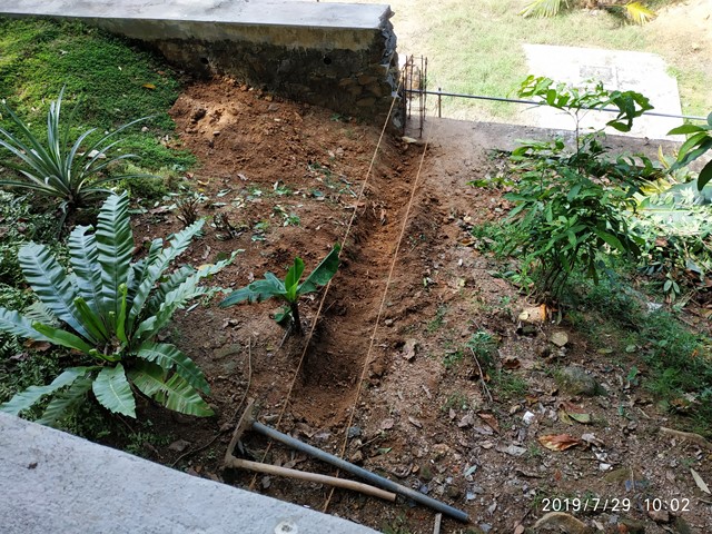 Und schon wieder eine Mauer, eine weitere Abstufung im Garten damit nicht die ganze |