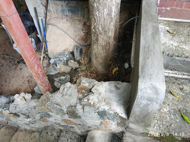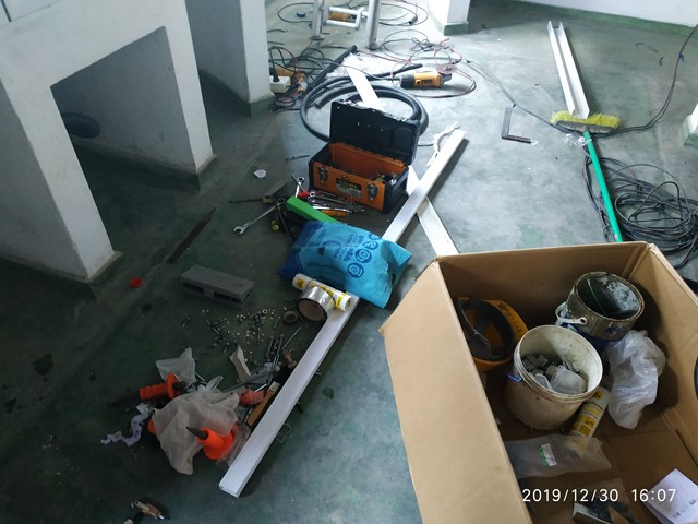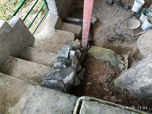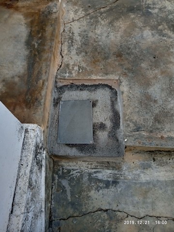 Das ganze Loch wurde verkleinert und eine kleine Platte montiert. Darunter befinden sich Kabel |