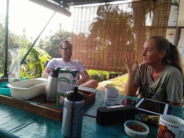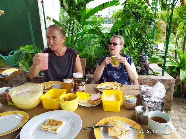 Jacky und Tina sind mal wieder die Ersten am Fruehstueckstisch. |