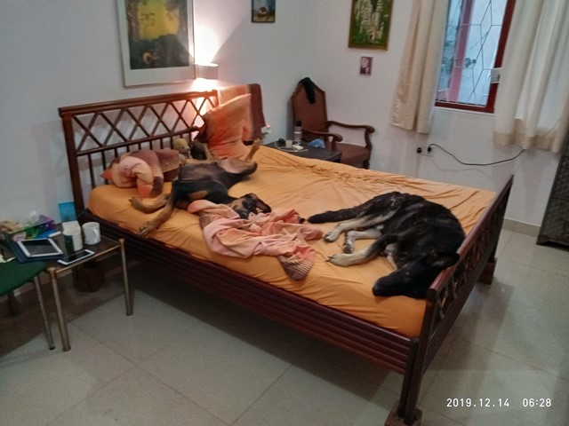 Die Hundis bleiben grundsaetzlich laenger im Bett als wir. |