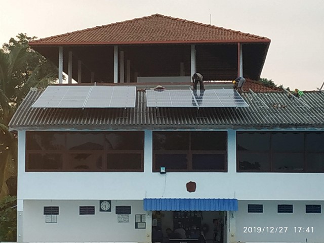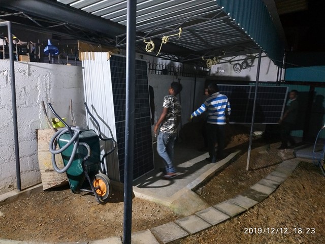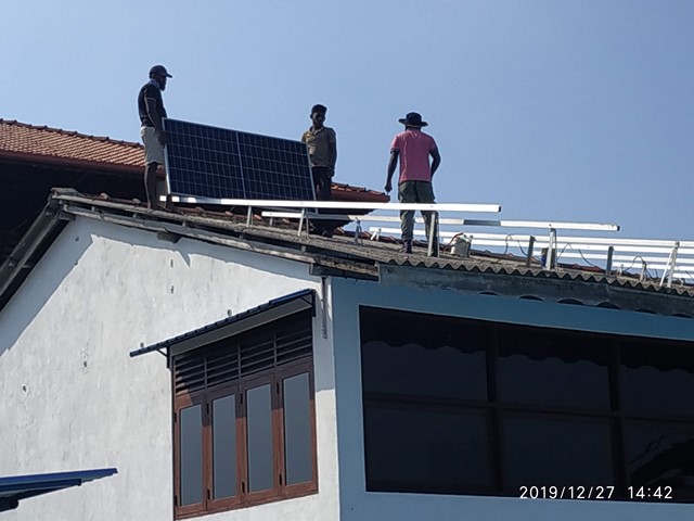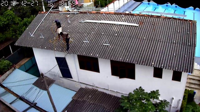 Ein Solarmodul wird auf das Dach gezogen. Es waren nur 42. |