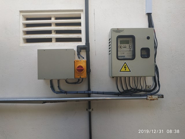 Rechts der Stromzaehler und links der Kasten wo nun beide Stroeme zusammen kommen. |
