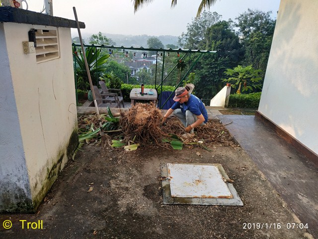 Auch der Kuechenabfluss war mal wieder verstopft und musste gereinigt werden. |