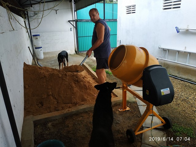 ...zementieren. Vielleicht vergroessert sich auch der Fuhrpark. So haben wir erst Sand |