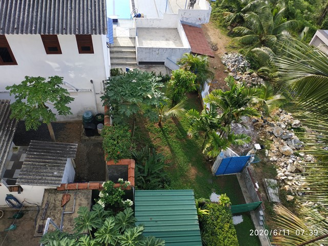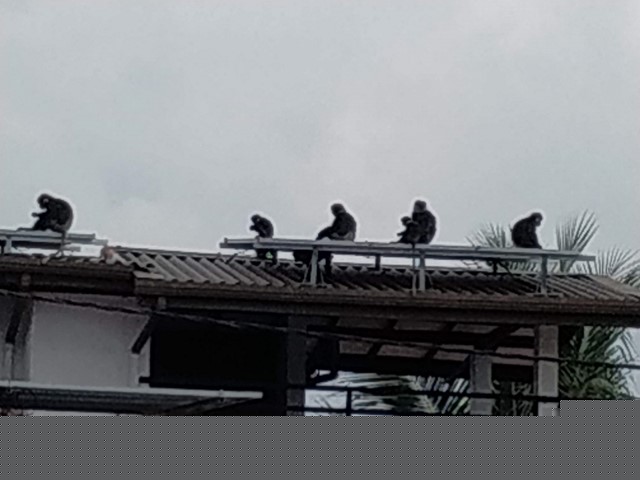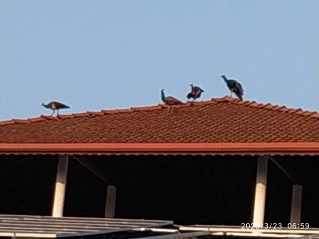 Morgens um halb Acht in Galle, 4 Pfaue auf unserem Dach.