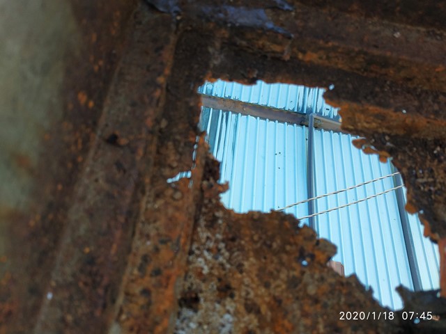 Ein riesiges Loch wodurch der Regen auf das untere Dach floss und einen imensen