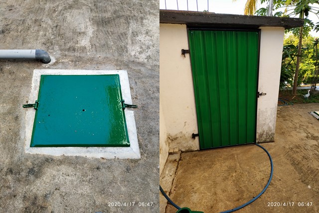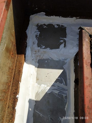 Eine neue Metallplatte wurde eingeklebt und mit Silikon abgedichtet.