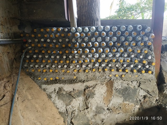Neben dieser Treppe entsteht eine weitere kleine Flaschenmauer.