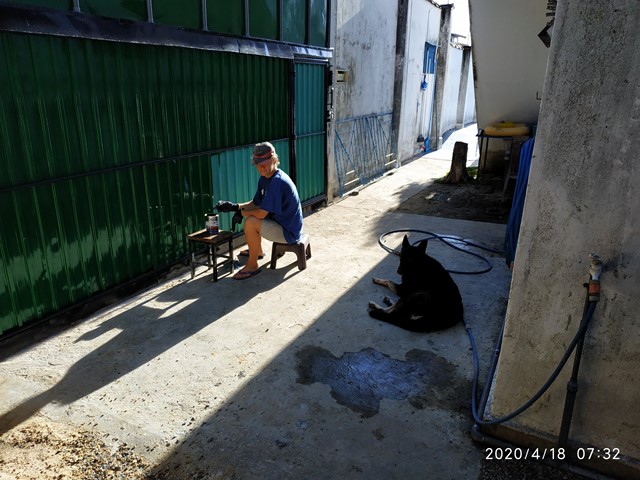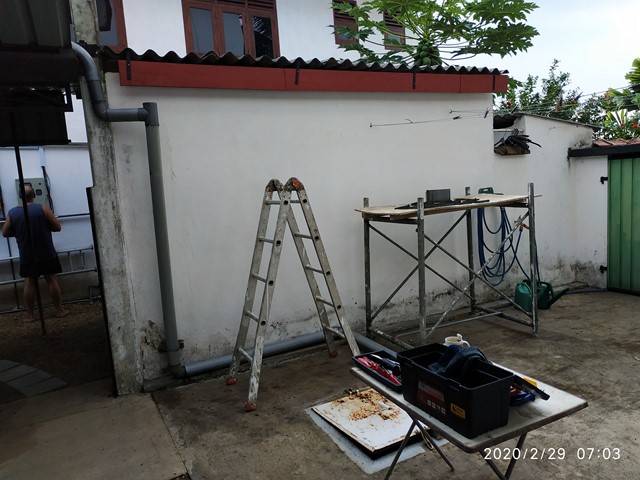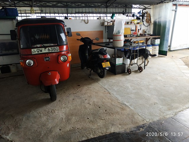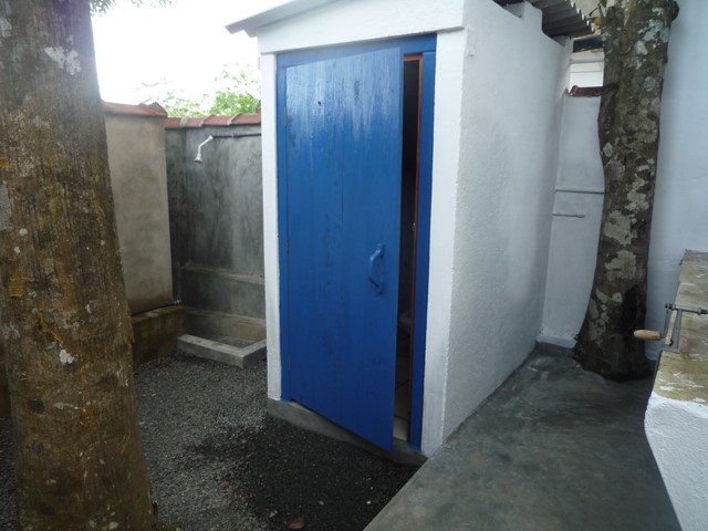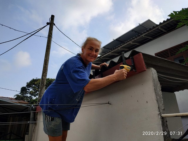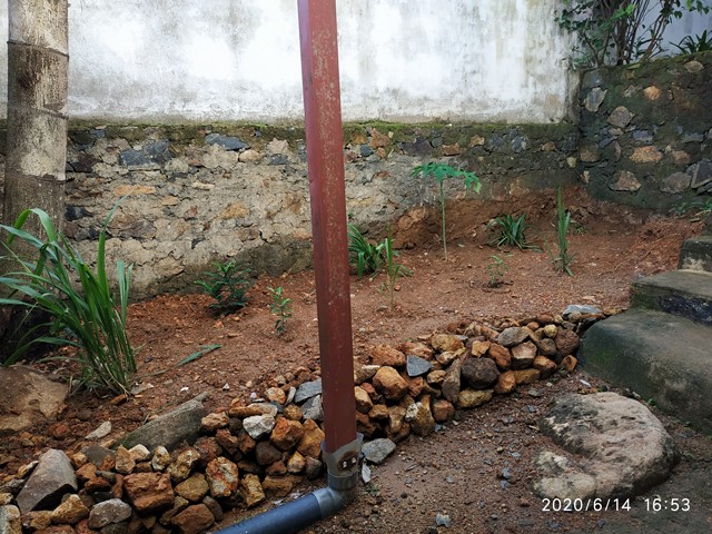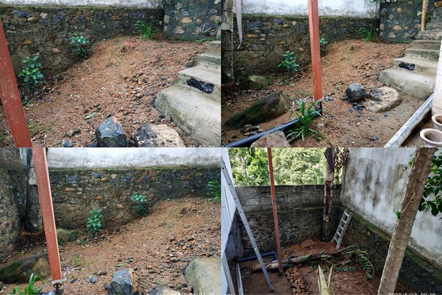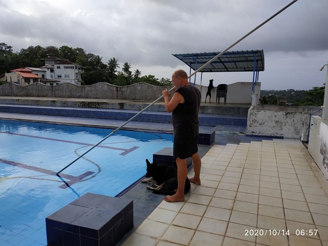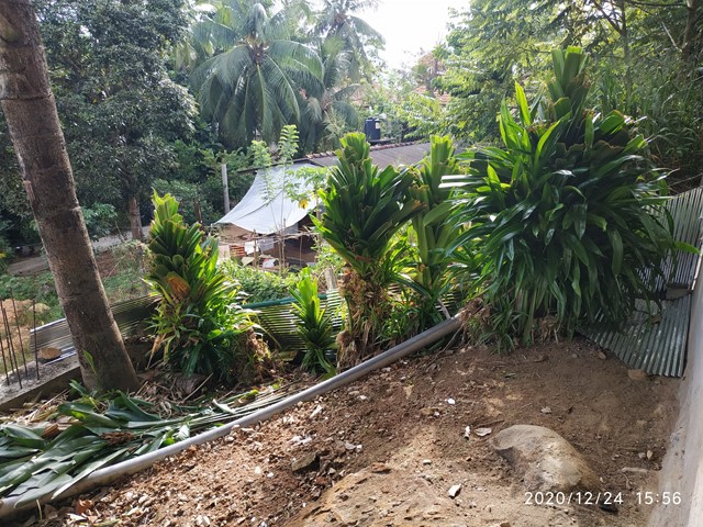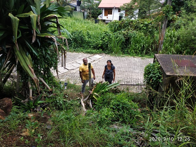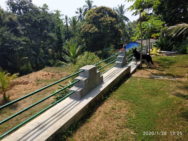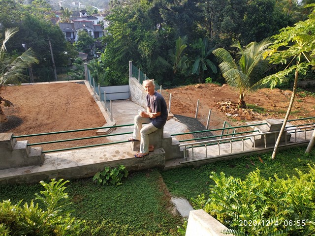 Upul, unser neuer Nachbar, vor seinem Grundstueck. Er repariert den Zaun.