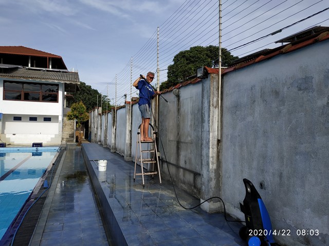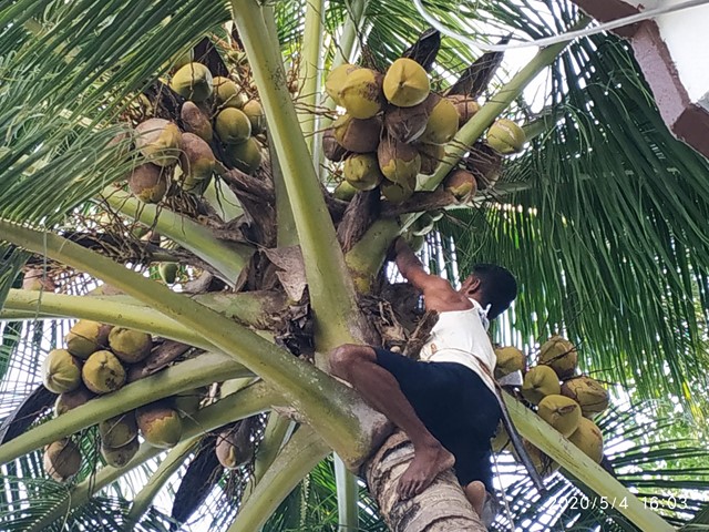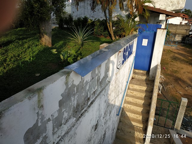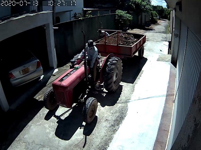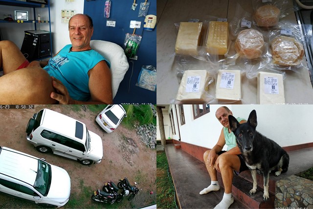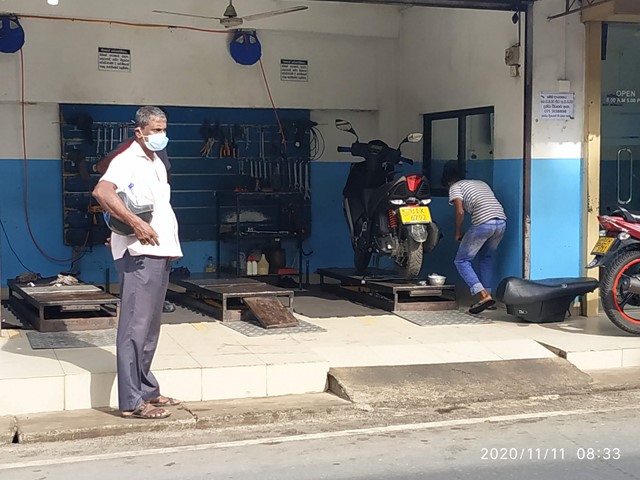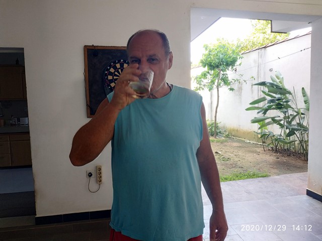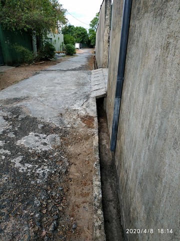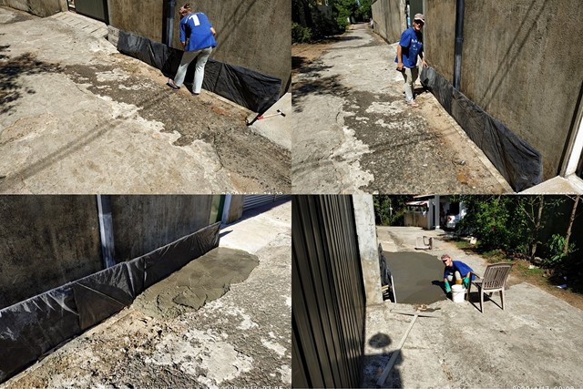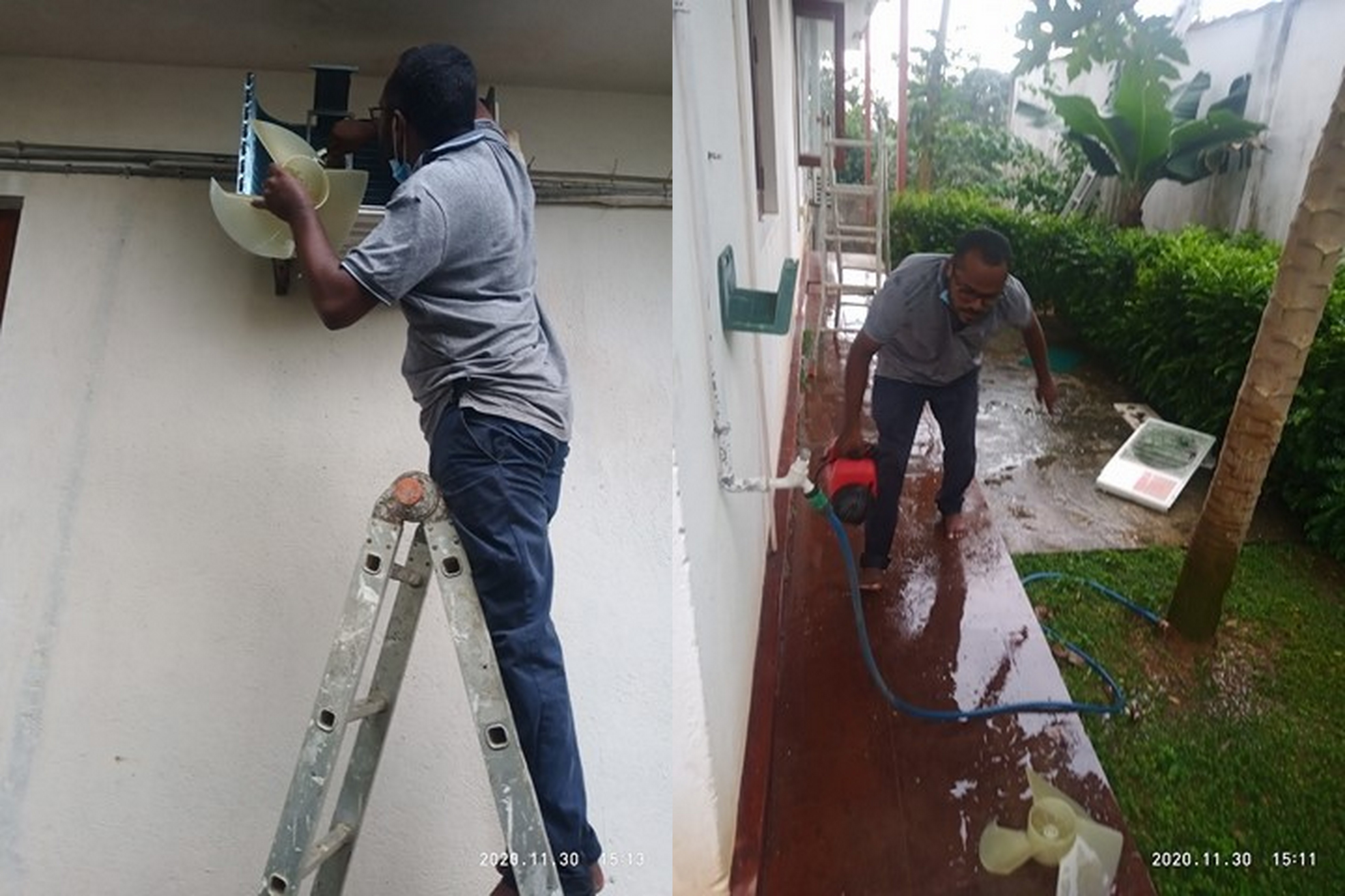 Upul, unser neuer Nachbar, vor seinem Grundstueck. Er repariert den Zaun.