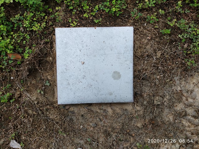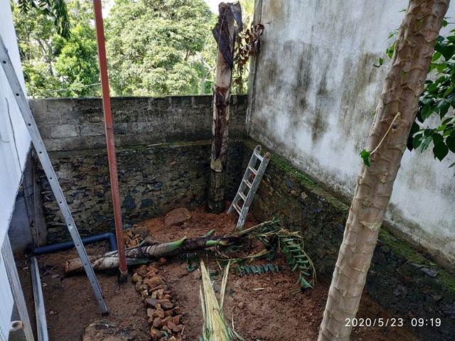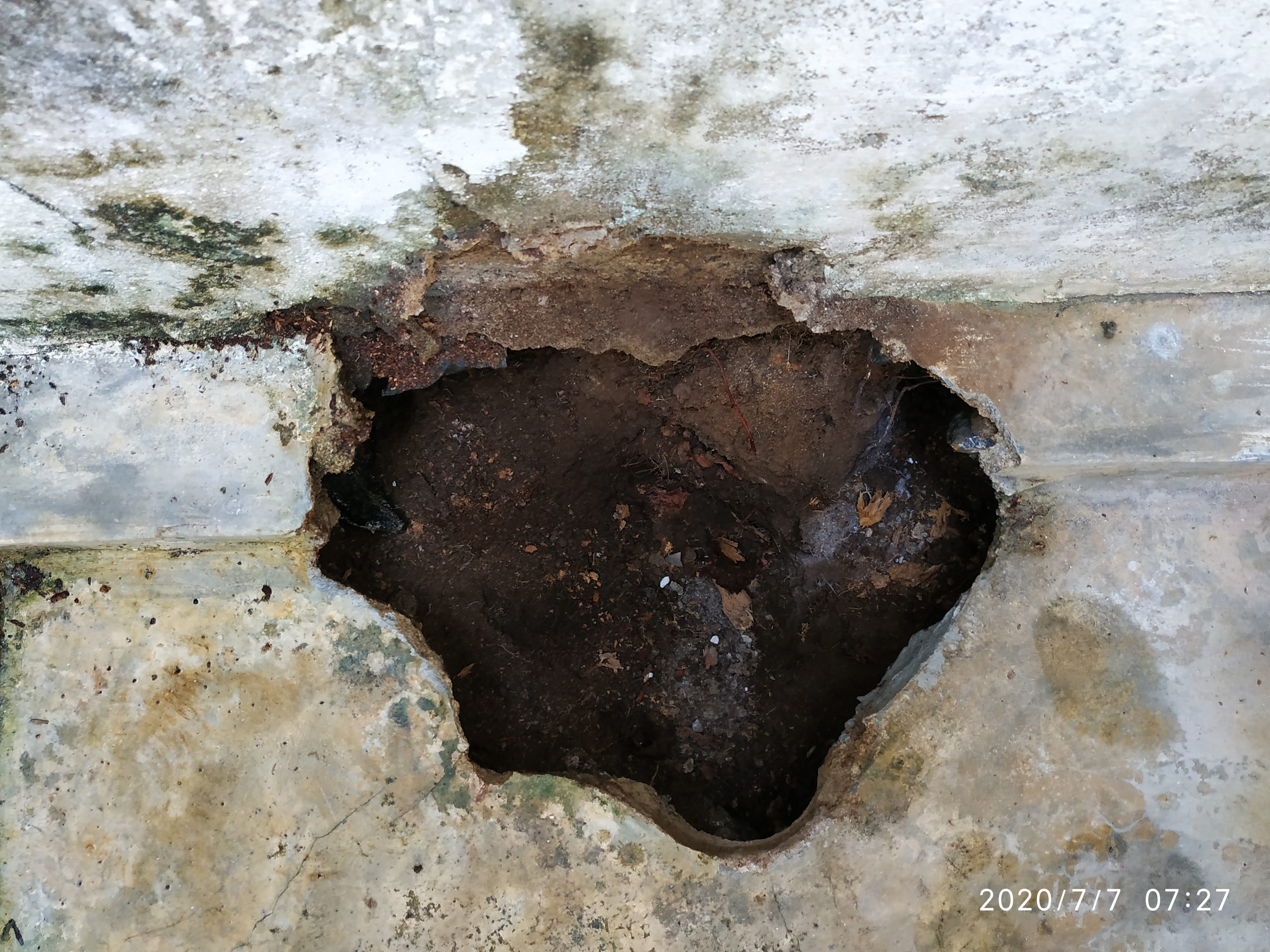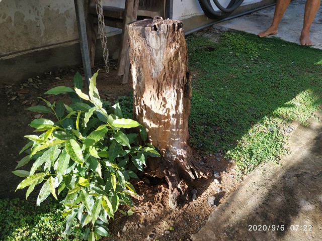 Das hinterlies der Baum. Ein riesen Loch. Das haben wir mit Steine gefuellt,