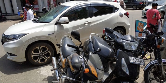Der mittlere Scooter ist unser. So schnell wird man zugeparkt.