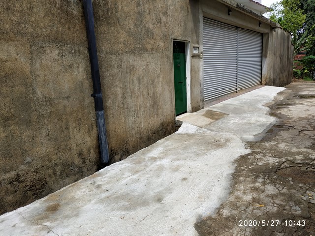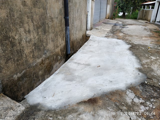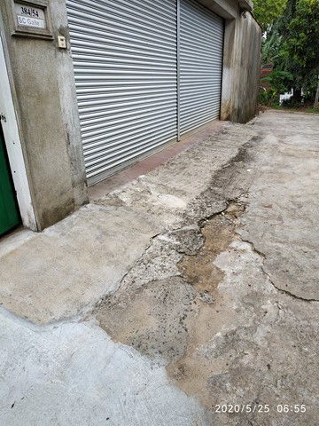 Ein Dorn in unserem Auge. Die Strasse vor unserem Rolltor. Ebenfalls nicht Deutsch.