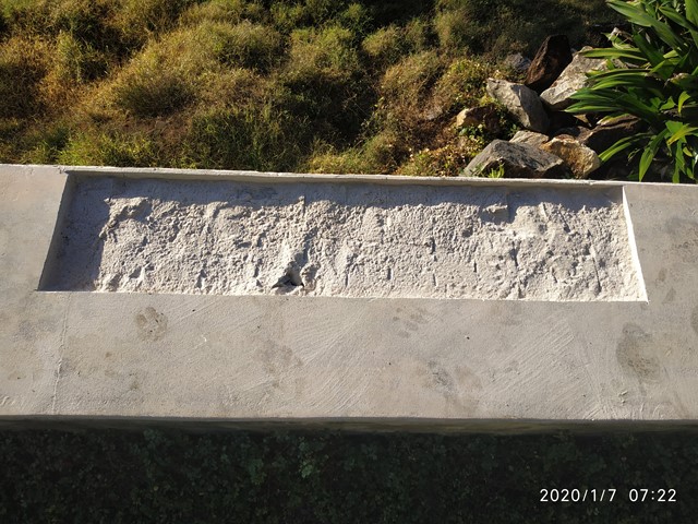 Steinen einbetoniert. Fuer den Halt noch Metallstaeben mit einzementiert.